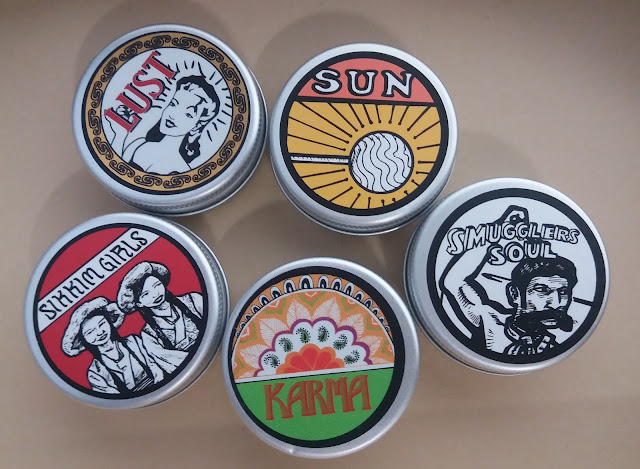 Upea ja hyvin erilainen tuoksu kokoelmassani on tämä Lushin kiinteä parfyymi, joka kantaa nimeä Smugglers Soul. Salakuljettajan sielulla tai hengellä on takanaan erikoinen tarina, jonka voit lukaista Lushin sivuilta. Tiivistettynä tämän tuoksun inspiraationa on santeliöljykaupan tummempi puoli - salakuljetuksista kidnappauksiin ja aina väärennettyihin ainesosiin saakka.